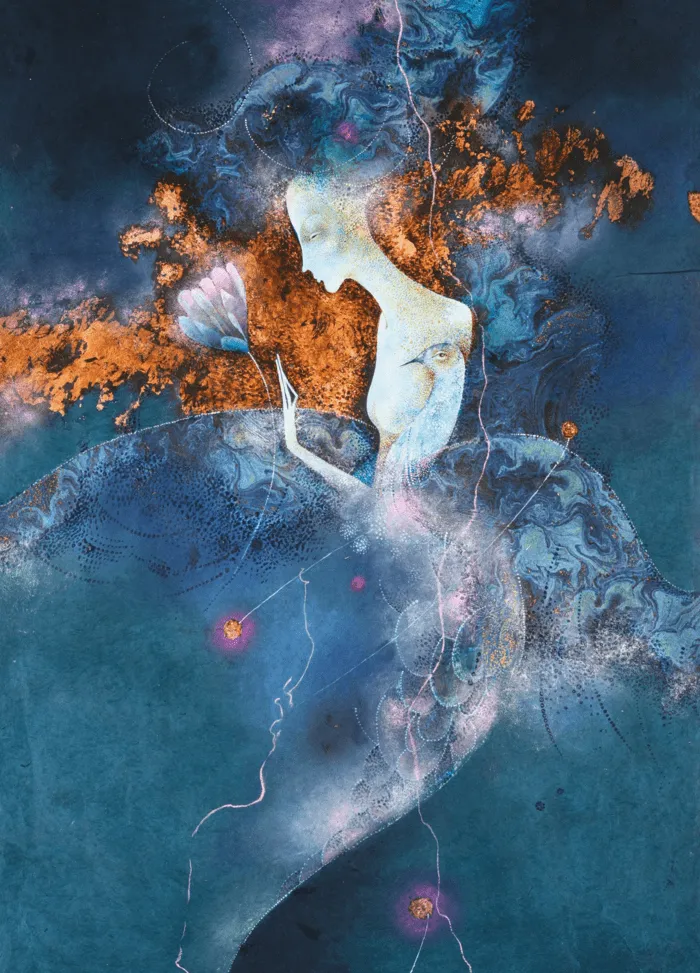 Keď maľujem snažím sa o znázornenie harmónie medzi telesným a duchovným svetom.