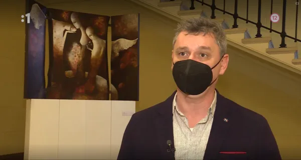Otvorenie výstavy ANIOŁ STRÓŻ v Krakove, v Poľsku, z ľava Carmen Kováčová kurátorka, Martin Augustín
